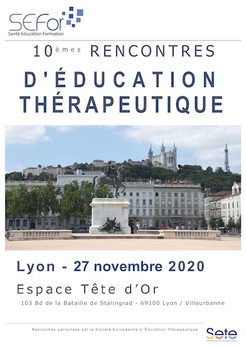 Les 10èmes rencontres d’Education Thérapeutique auront lieu le vendredi 27 novembre 2020 à l'Espace Tête d’Or à Lyon.