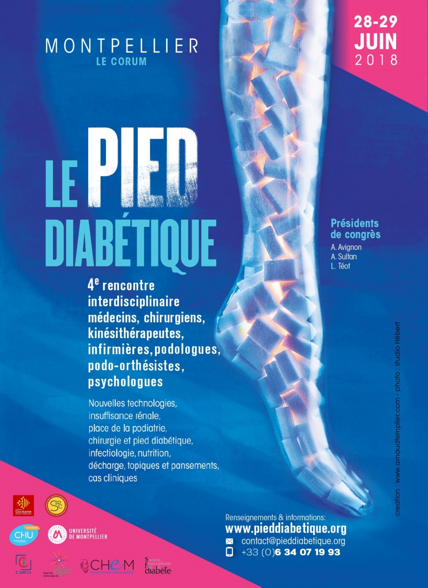 Les 4èmes rencontres interdisciplinaires (médecins, chirurgiens, kinés, IDE, podologues, orthésistes, psychologues) sur le pied diabétique auront lieu les 28 et 29 juin au Corum de Montpellier. Pensez à vous inscrire !