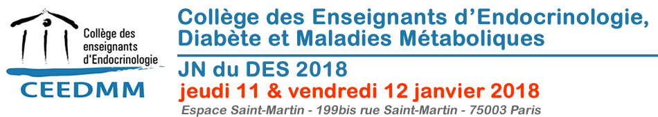 Les Journées Nationales du DES d'Endocrinologie, Diabète et Maladies Métaboliques auront lieu les Jeudi 11 et Vendredi 12 Janvier 2018 à l'Espace Saint-Martin à Paris.