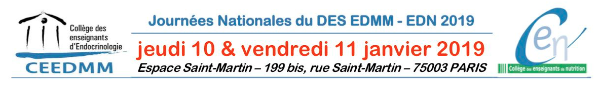 Les Journées Nationales du DES d'Endocrinologie, Diabète et Maladies Métaboliques auront lieu les Jeudi 10 et Vendredi 11 Janvier 2019 à l'Espace Saint-Martin à Paris.